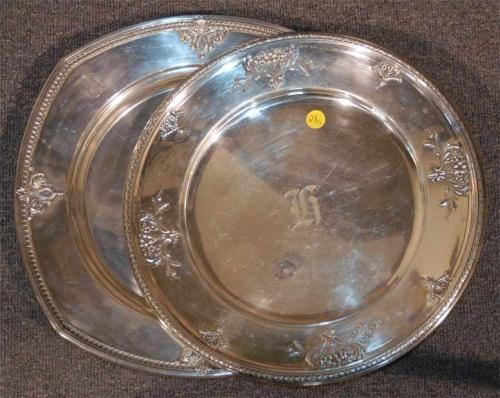 PAIR OF LARGE STERLING PLATTERS, each monogramed