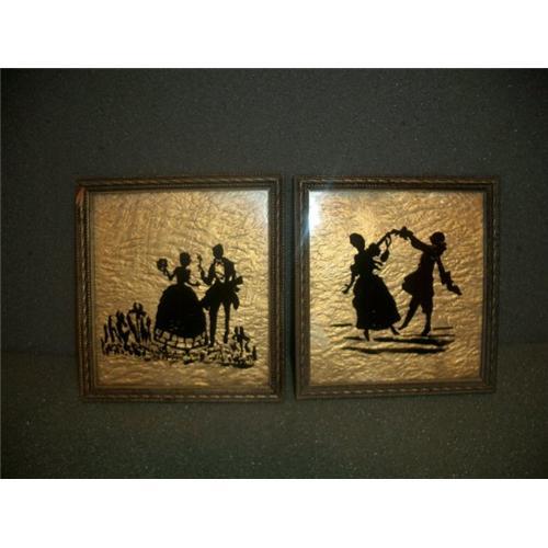 A PAIR OF VICTORIAN GOLD BACKGROUND FOIL SILHOUETTES OF LOVERS 5 X 5 CONDITION ONE OF THE FRAMES ITS DAMAGE OTHER WISE GREAT CONDITION UNMARKED