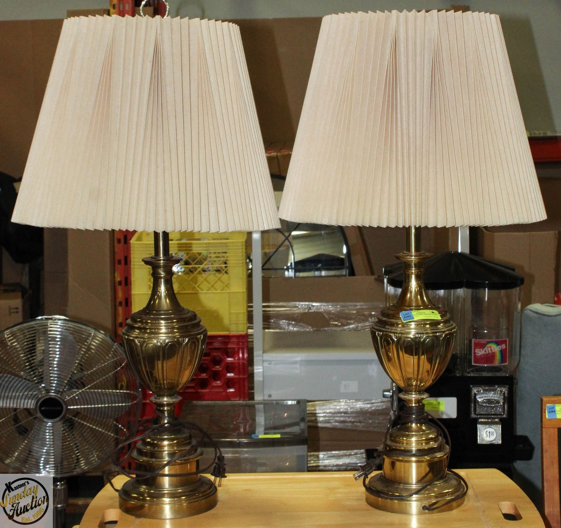 PAIR OF MATCHING BRASS LAMPS WITH SHADES