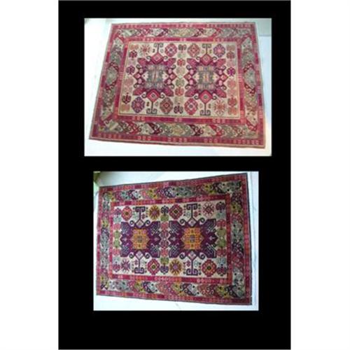 ONE MEASURES 35" x 44" AND THE OTHER ONE 33 1/2 " x 45".THE COLORS AND DETAILS DIFFER AND ADD MORE CHARACTER TO THIS COUPLE OF RUGS.
