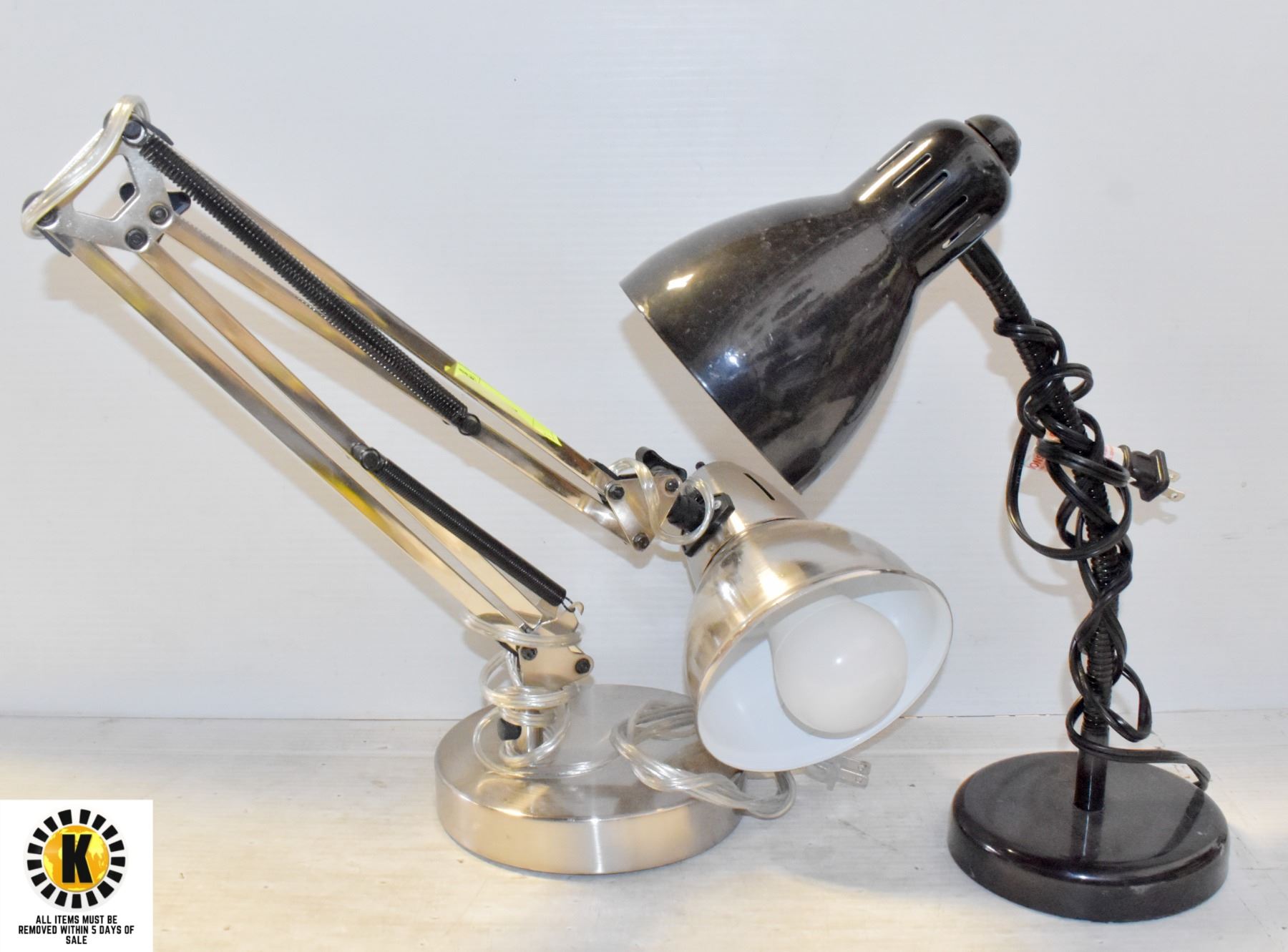 PAIR OF METAL TABLE LAMPS (ONE BLACK + ONE SILVER)