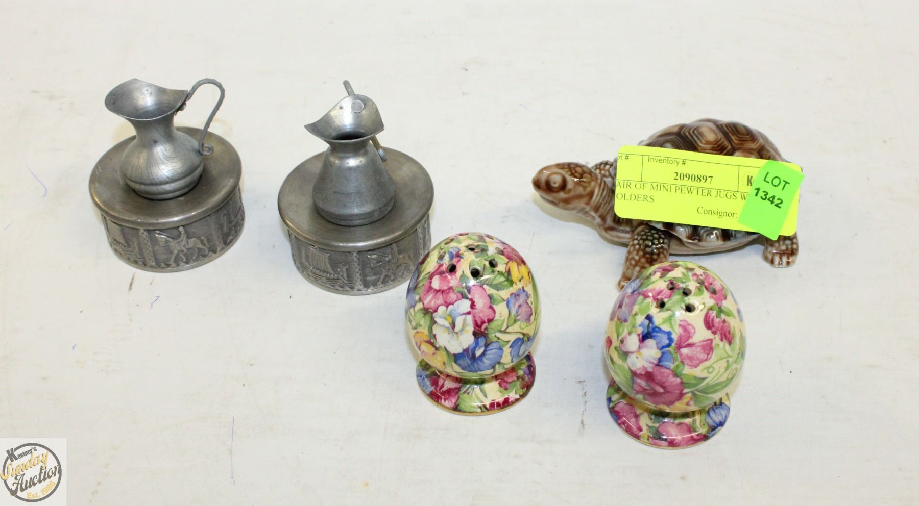 (HOLDERS CAN BE USED AS REGULAR STICK CANDLE HOLDERS) + GRIMWADES MADE IN ENGLAND S+P SHAKERS + WADE PORCELAIN MADE IN ENGLAND TURTLE TRINKET DISH **ALL ITEMS MUST BE REMOVED BY 5PM SATURDAY, AUGUST 16TH 2025. ALL REMAINING ITEMS WILL BE SUBJECT TO A $6.00 PER DAY STORAGE CHARGE. ANY ITEMS REMAINING AFTER MONDAY, SEPTEMBER 1ST 2025 WILL BE CONSIDERED FORFEITED. NO REFUNDS WILL BE ISSUED FOR FORFEITED ITEMS. TO SCHEDULE A PICK UP APPOINTMENT CLICK HERE