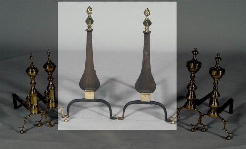 PAIR OF MONUMENTAL KNIFE EDGE ANDIRONS by Richard "Dick" Everett (20th century), signed, 28" high, CONDITION: excellent, no damage or repairs.