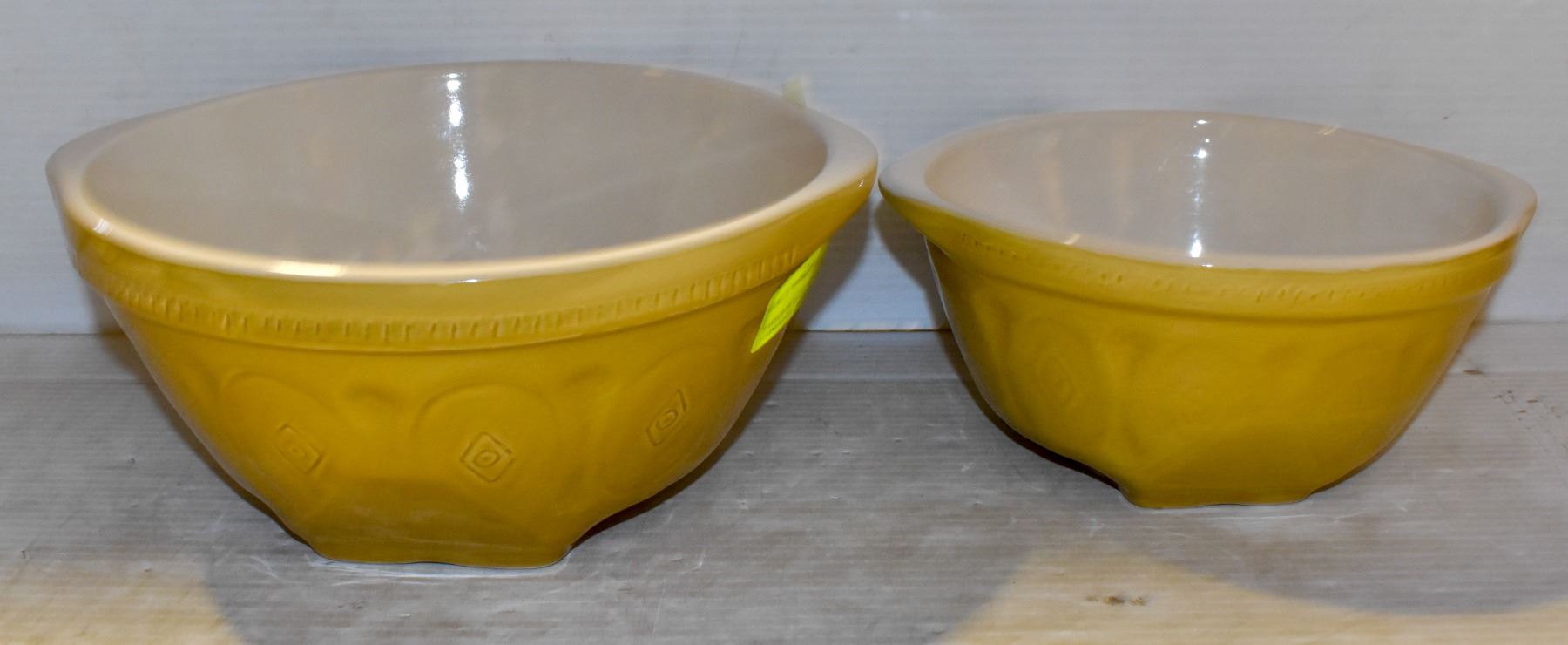 PAIR OF MUSTARD COLOUR STONEWARE MIXING BOWLS