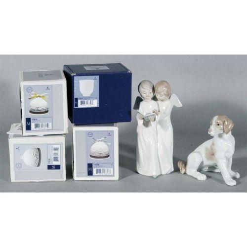 1 PAIR OF NAO FIGURES together with (4) boxed LLADRO BELLS CONDITION REPORT: excellent. PACKING AND SHIPPING (excluding insurance) by Fairfield Auction to points within the Continental U.S.A. and Canada (all other international must be handled by 3rd party shipper) $40.