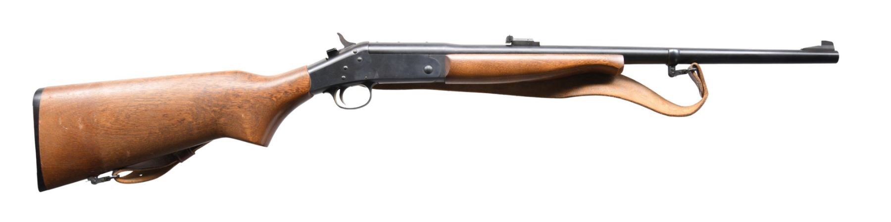 SINGLE SHOT RIFLES. 1) Cal. 30-30 Win. S#. NE271676. Bbl. 22" with bladed serrated ramp front sight. Elevation adjustable square notch rear sight. Factory tapped with plug screws for scope mounts. Hardwood stock with buttplate, QD sling swivels, and leather sling. CONDTION: Overall very good metal finish with the exception of some worn finish patches on the bbl from riding in a vehicle gun rack. Good stock set has thinning finish and remnants of an old dried out slip on Pachmayer recoil pad. Great bore. MODERN (24-4351/ZAL) 2) Cal. 44 REM MAG. S# NW278451. Bbl. 22" with bladed serrated ramp front sight. Williams ramp adjustable U notch rear bbl sight. Screw plugged factory tapped holes for scope mounts. Hardwood stock with vented rubber recoil pad, QD sling swivels, and a Hunter leather sling. CONDITION: Overall near excellent with only a couple of very minor handling marks. Great bore. MODERN (24-4351/ZAL) $150-250