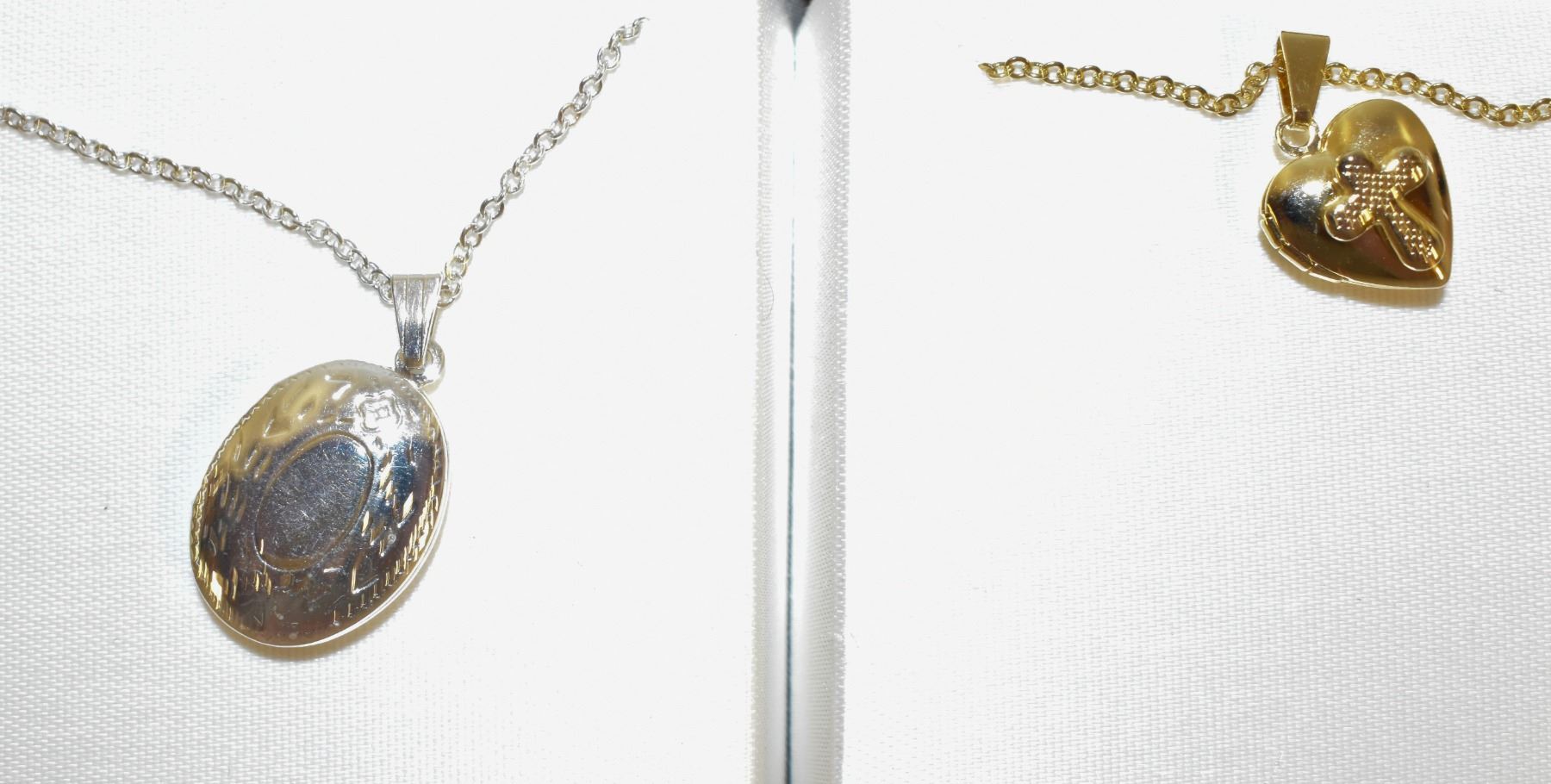 PAIR OF NEW LOCKETS (ONE GOLD TONE HEART, AND ONE