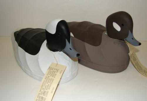 PAIR OF NICK SAPONE, MANEO, NORTH CAROLINA BUFFLEHEAD DECOYS. Canvasbacks. Signed on bottom “Nick Sapone/Maneo, N.C.” 11.5” L