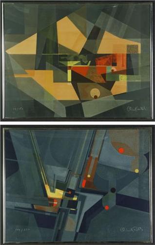 PAIR OF SERIGRAPHS 20 1/2'' x 26 3/4'', Indistinctly signed lower right. Abstract compositions. Numbered 89/260 and 144/260. Placed in metal frames. Framers labels on the verso.