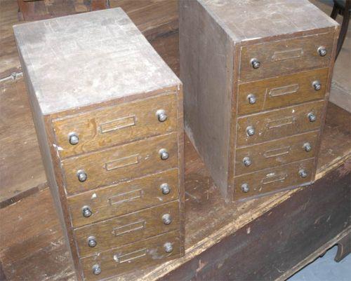 PAIR OF OAK FILE BOXES, each 18"x10"x15", splits, old finish, PACKING AND SHIPPING (excluding insurance) $60,