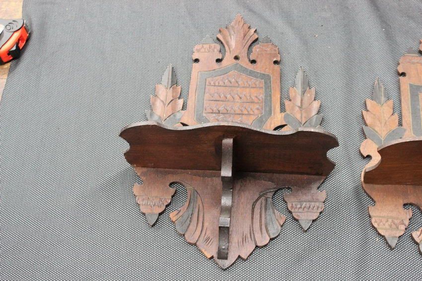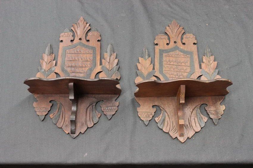 PAIR OF ORNATE WALNUT SHELVES