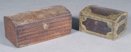 PAIR OF PAINT DECORATED DOME TOP BOXES, 24" and 16" long, 19th century