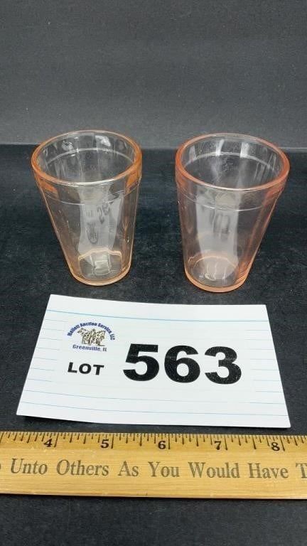PAIR OF PINK DEPRESSION HAZEL ATLAS JUICE GLASSES
