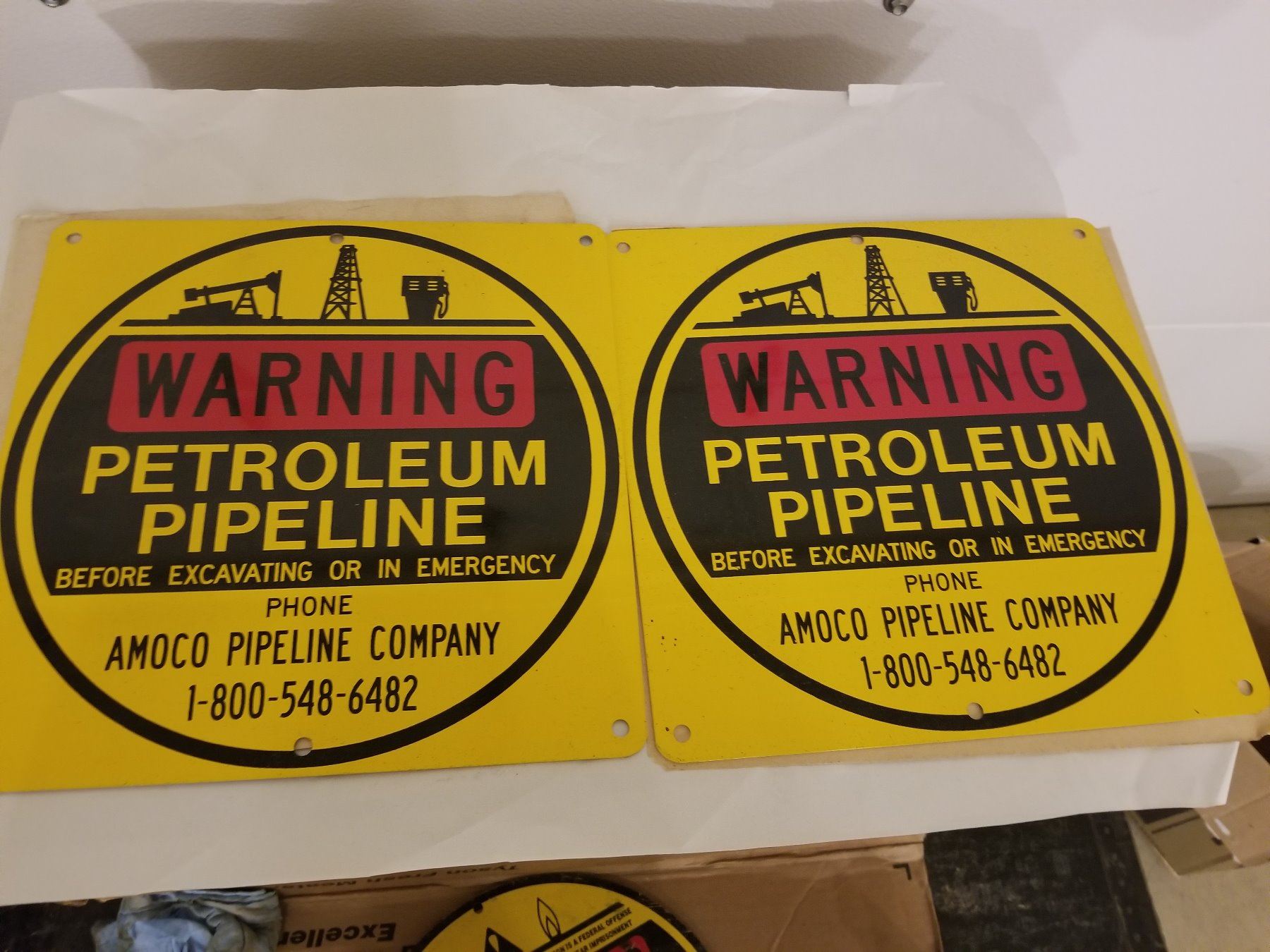 PAIR OF PIPELINE CROSSING SIGNS (AMOCO) *MINT UNUSED*'