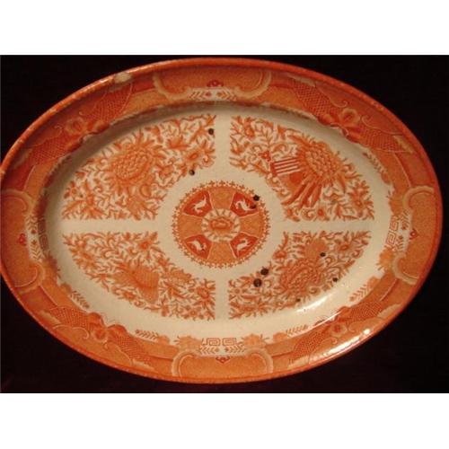 Circa 1820-1840 Chinese Export A Very Rare Pair of Orange Fitzhugh Platters measuring 16" X 13".