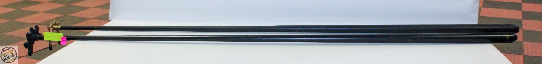 PAIR OF POOL CUE RESTS 1 BRASS ACCENTED