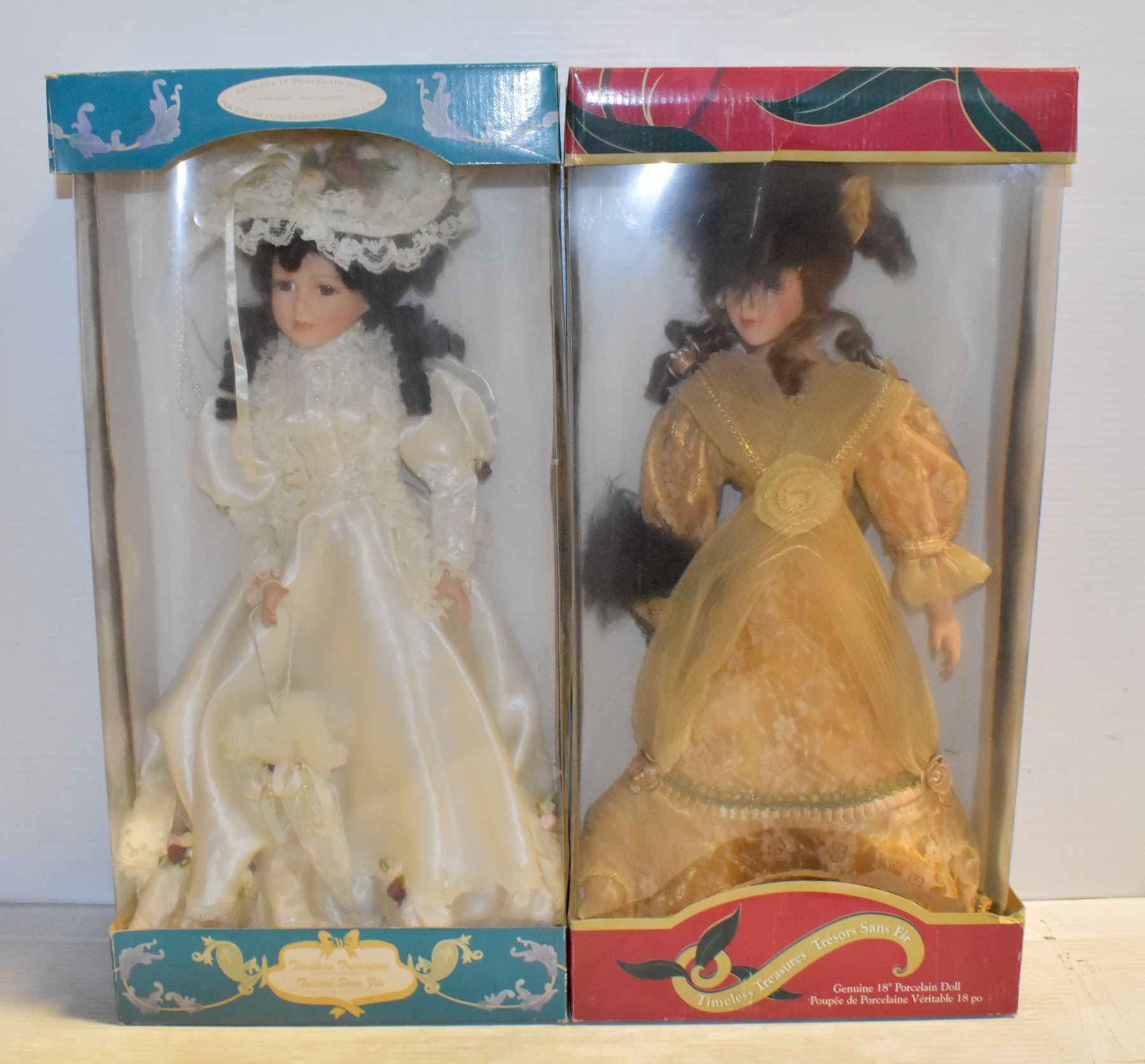 PAIR OF PORCELAIN DOLLS IN THEIR ORIGINAL BOXES