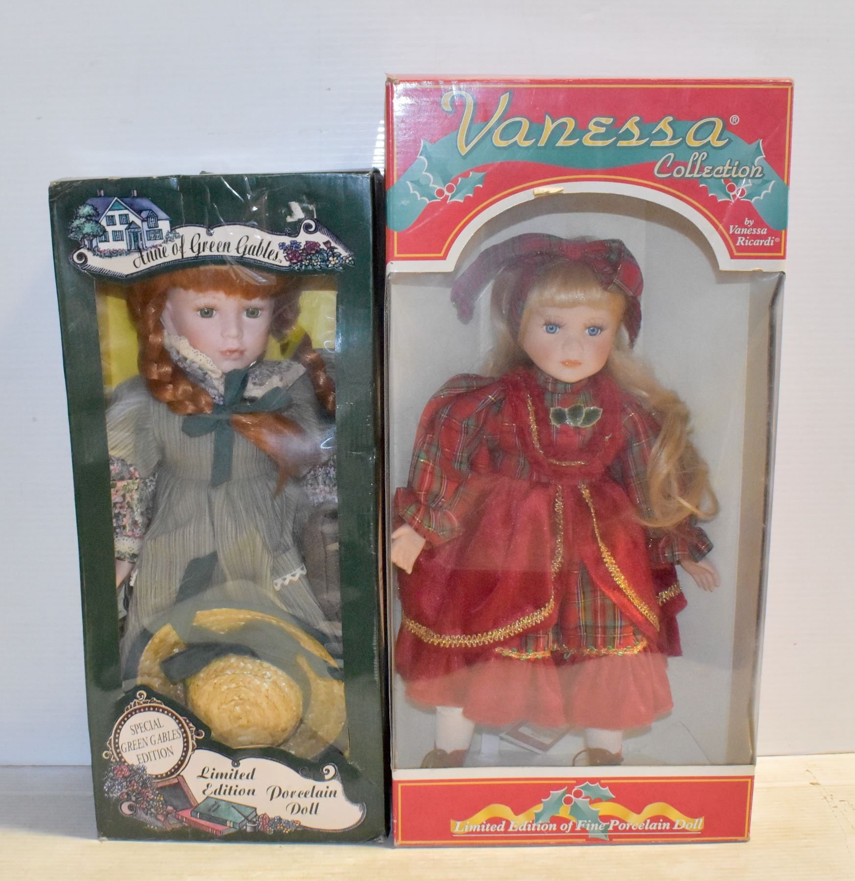 PAIR OF PORCELAIN DOLLS IN THEIR ORIGINAL BOXES