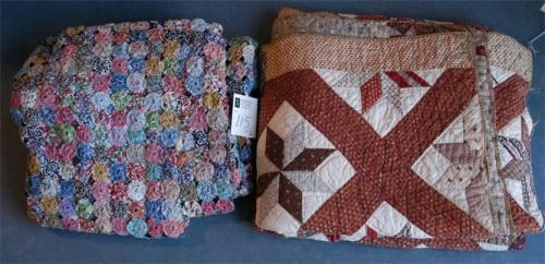 PAIR OF QUILTS yo-yo quilt and as-is patchwork star quilt
