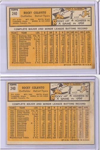 PAIR OF ROCKY COLAVITO BASEBALL CARDS. Consists of two Rocky Colavito 1963 Topps baseball cards. #240. Ungraded.