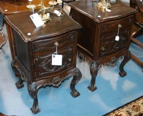 PAIR OF ROCOCO STYLE BEDSIDE CABINETS, circa 1930, murky finish <BR><BR><BR>