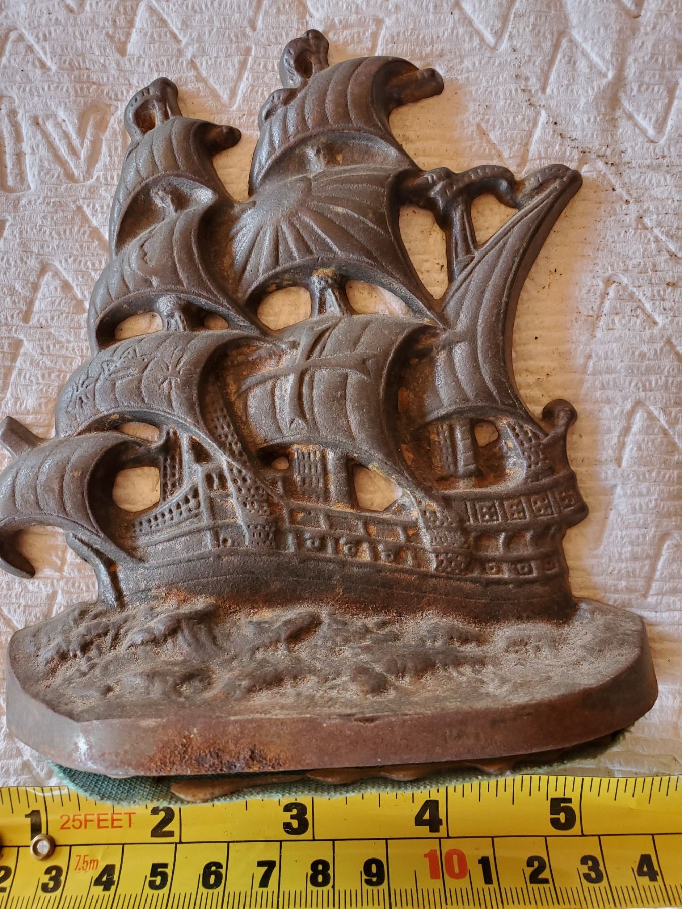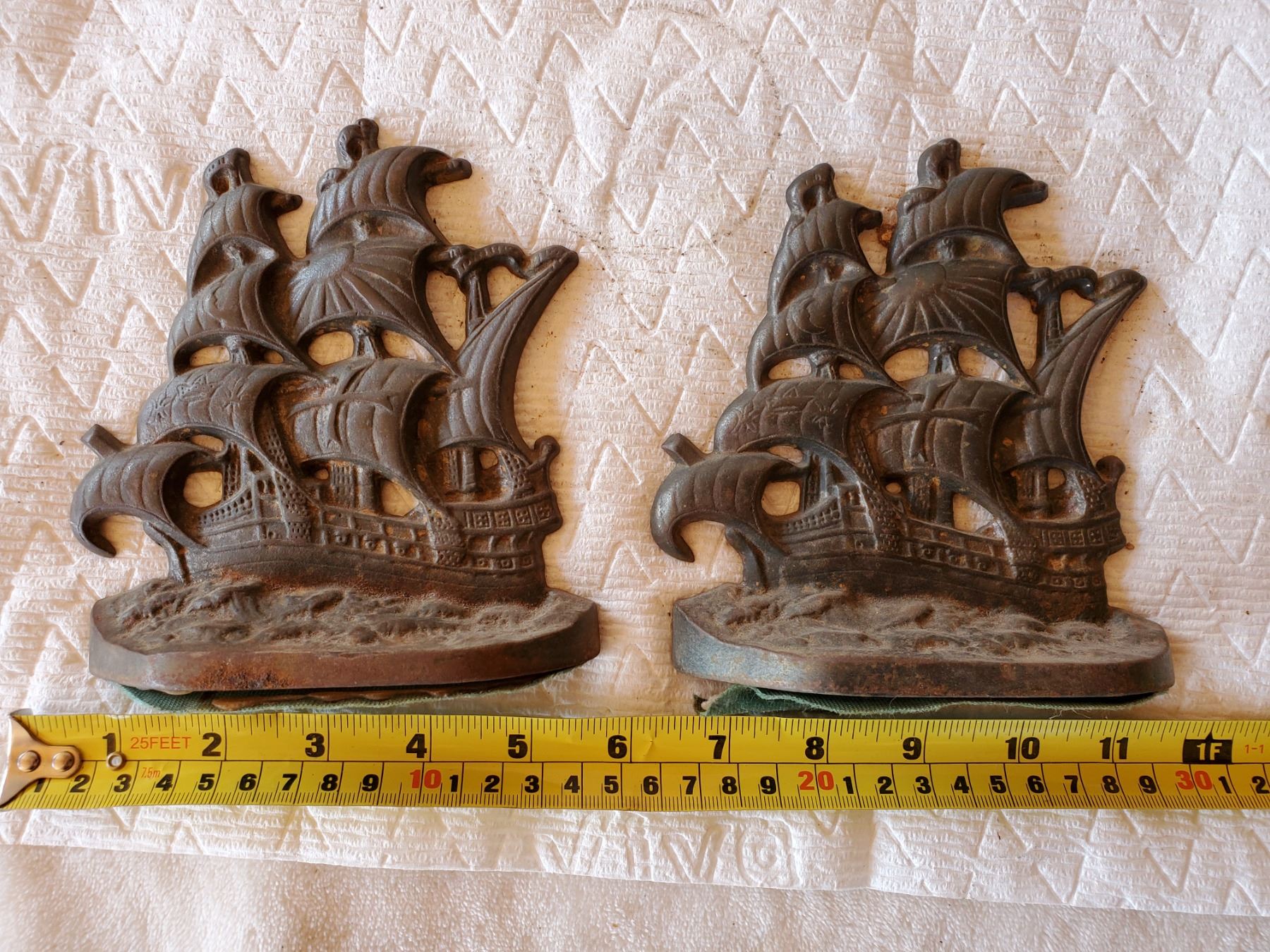 PAIR OF SAILING SHIP CAST IRON BOOK ENDS, DATED 1928