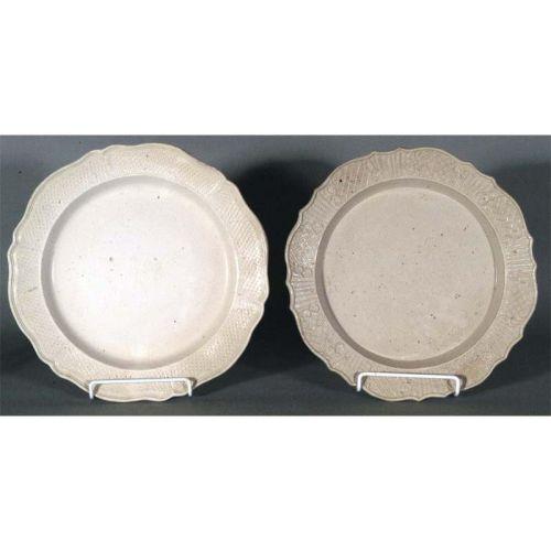 1 PAIR OF SALT GLAZE PLATTERS, 13 1/2" and 14" diameters, 18th century, CONDITION REPORT: couple of minor rim flecks. PACKING AND SHIPPING (excluding insurance) by Fairfield Auction to points within the Continental U.S.A. and Canada (all other international must be handled by 3rd party shipper) $40.