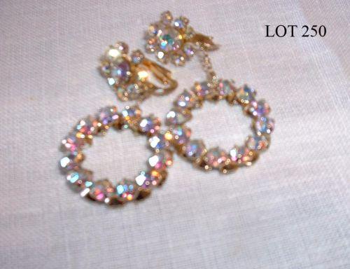 EACH WITH CLEAR AURORA BOREALIS RHINESTONES, CIRCULAR DROPS, SIGNED; 1 3/4" L