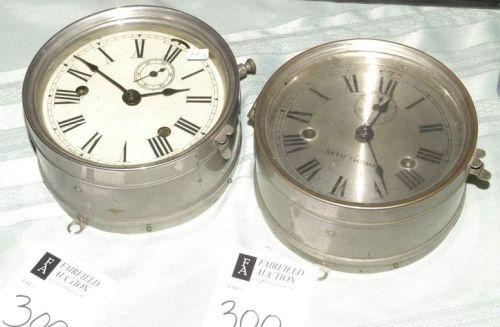 PAIR OF SHIP CL0CKS, one marked Seth Thomas with paper label verso, 5" faces,, CONDITION: good, some dings to face of one. PACKING AND SHIPPING BY FAIRFIELD AUCTION WITHIN CONTINENTAL USA (excluding insurance) $30