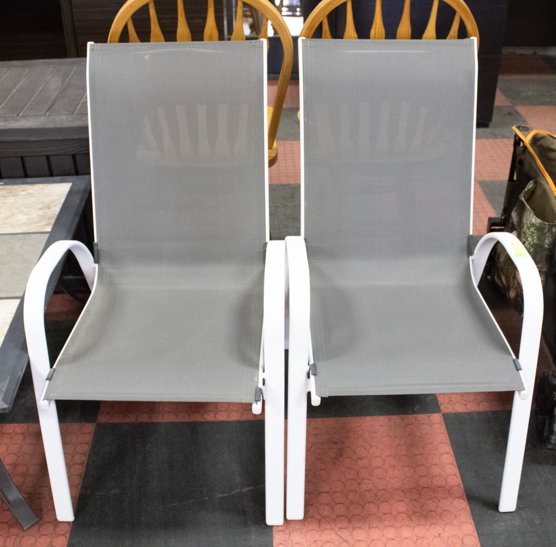 PAIR OF SHOWHOME GREY & WHITE PATIO CHAIRS