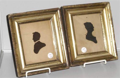 PAIR OF SILHOUETTES, in original giltwood frames, each 6"x4 1/2", 19th century