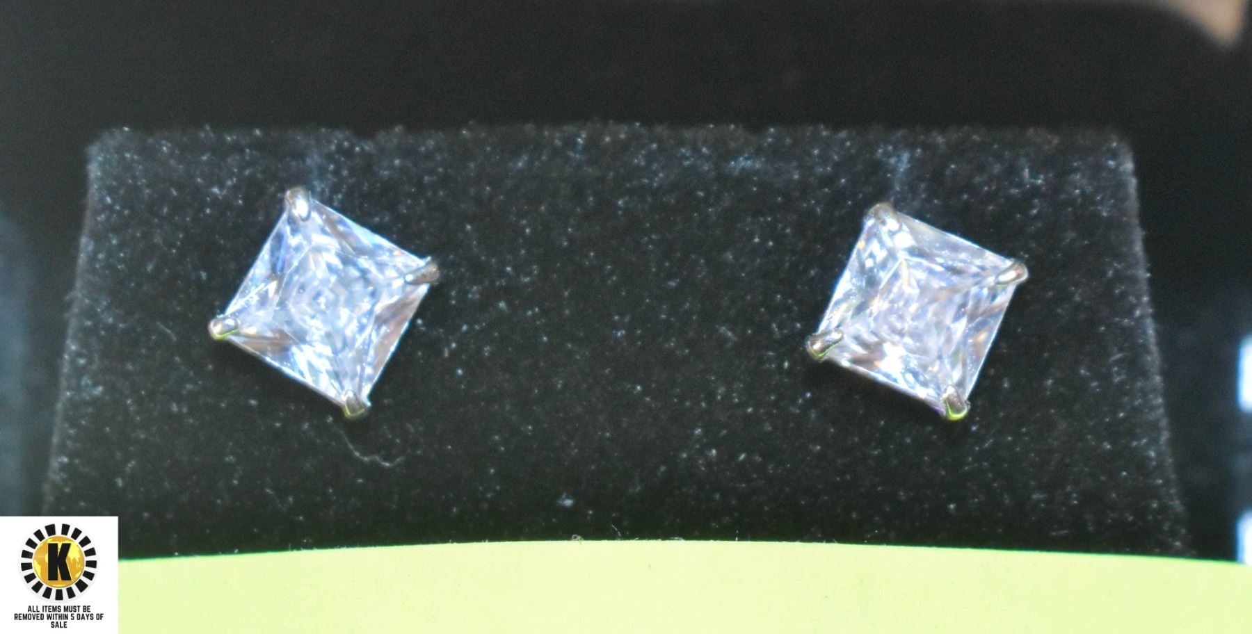 PAIR OF SOLID STERLING SILVER CUBIC ZIRCONIA