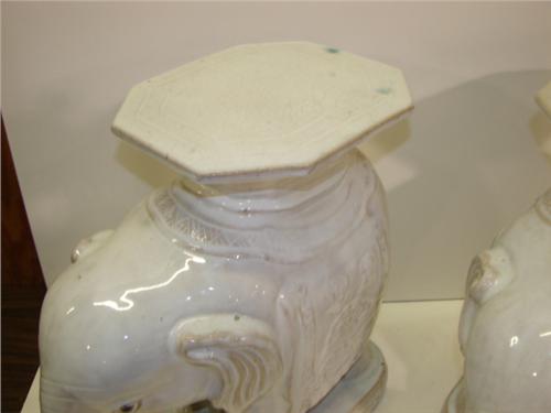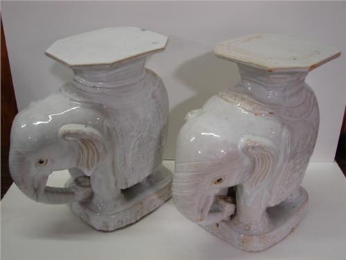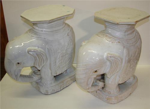 PAIR OF SOUTHEAST ASIAN ELEPHANT FORM PLANT STANDS. White glaze. Both show signs of crazing. 17”