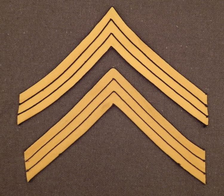 HERE ARE A PAIR OF SPANISH-AMERICAN WAR SARGEANT'S STRIPES. EACH 10" LONG AND ARE YELLOW/GOLD WITH BLACK PIPING. * *