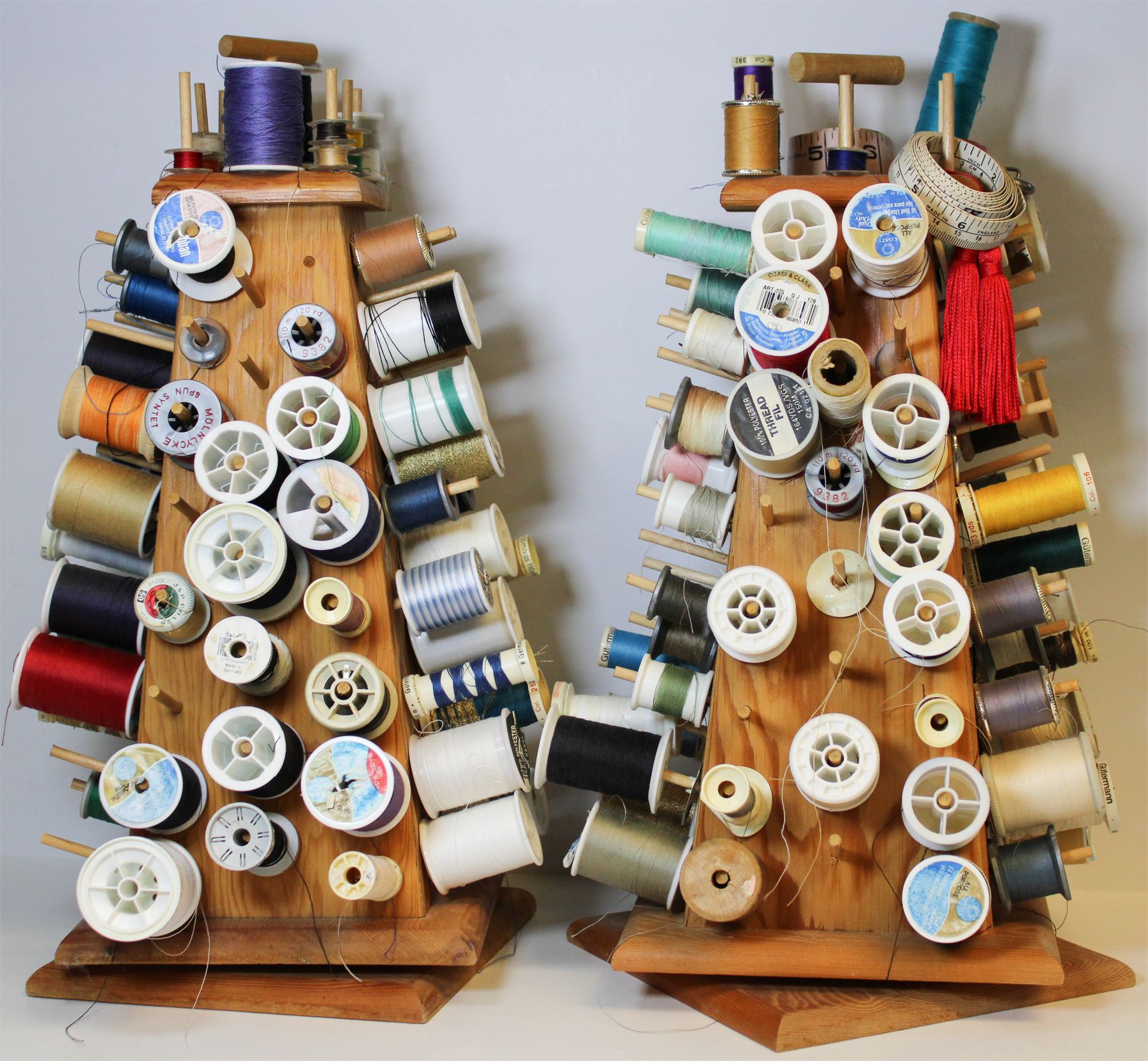 PAIR OF SPINNING SEWING THREAD HOLDERS WITH THREADS