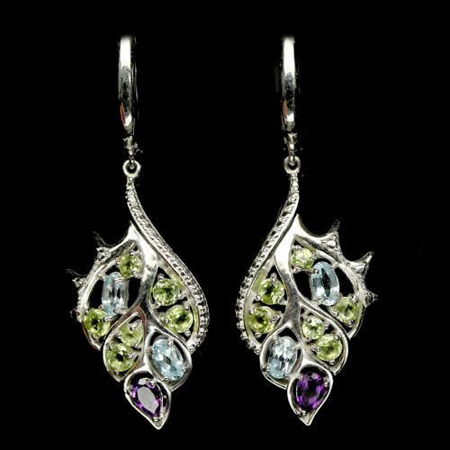 PAIR OF STERLING SILVER AMETHYST, TOPAZ & PERIDOT EARRINGS