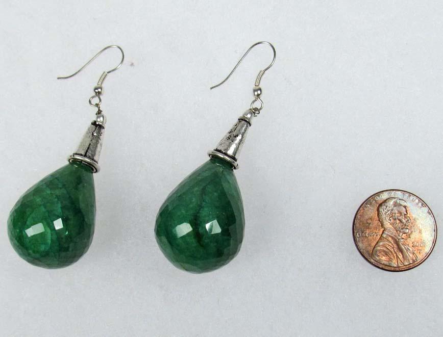 PAIR OF STERLING SILVER AND NATURAL EMERALD EARRINGS - 145 CTS. TOTAL WEIGHT