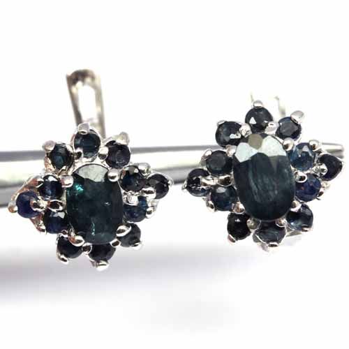 PAIR OF STERLING SILVER BLUE SAPPHIRE EARRINGS