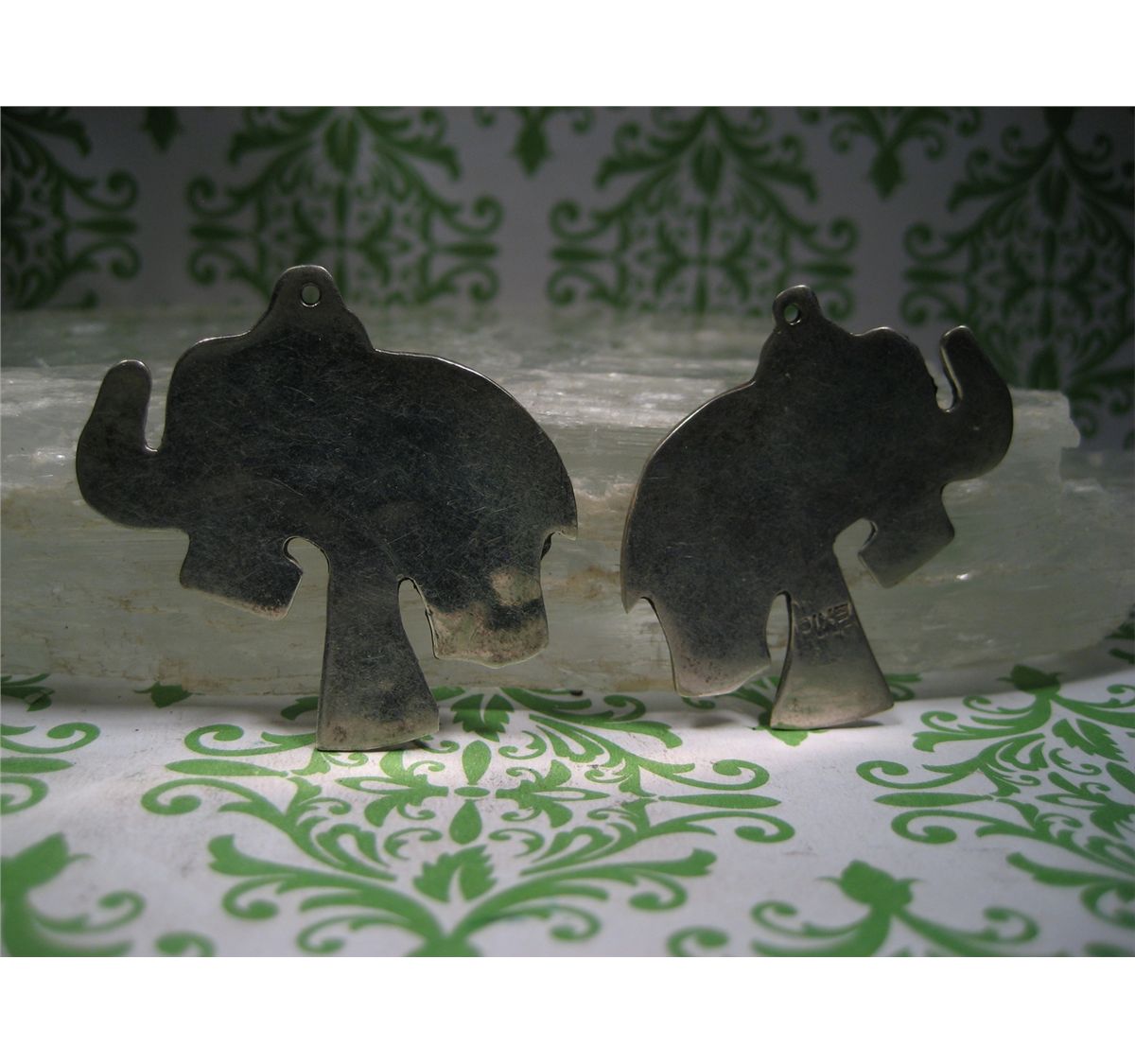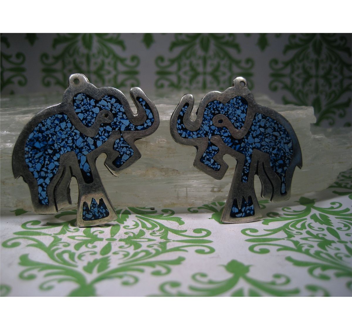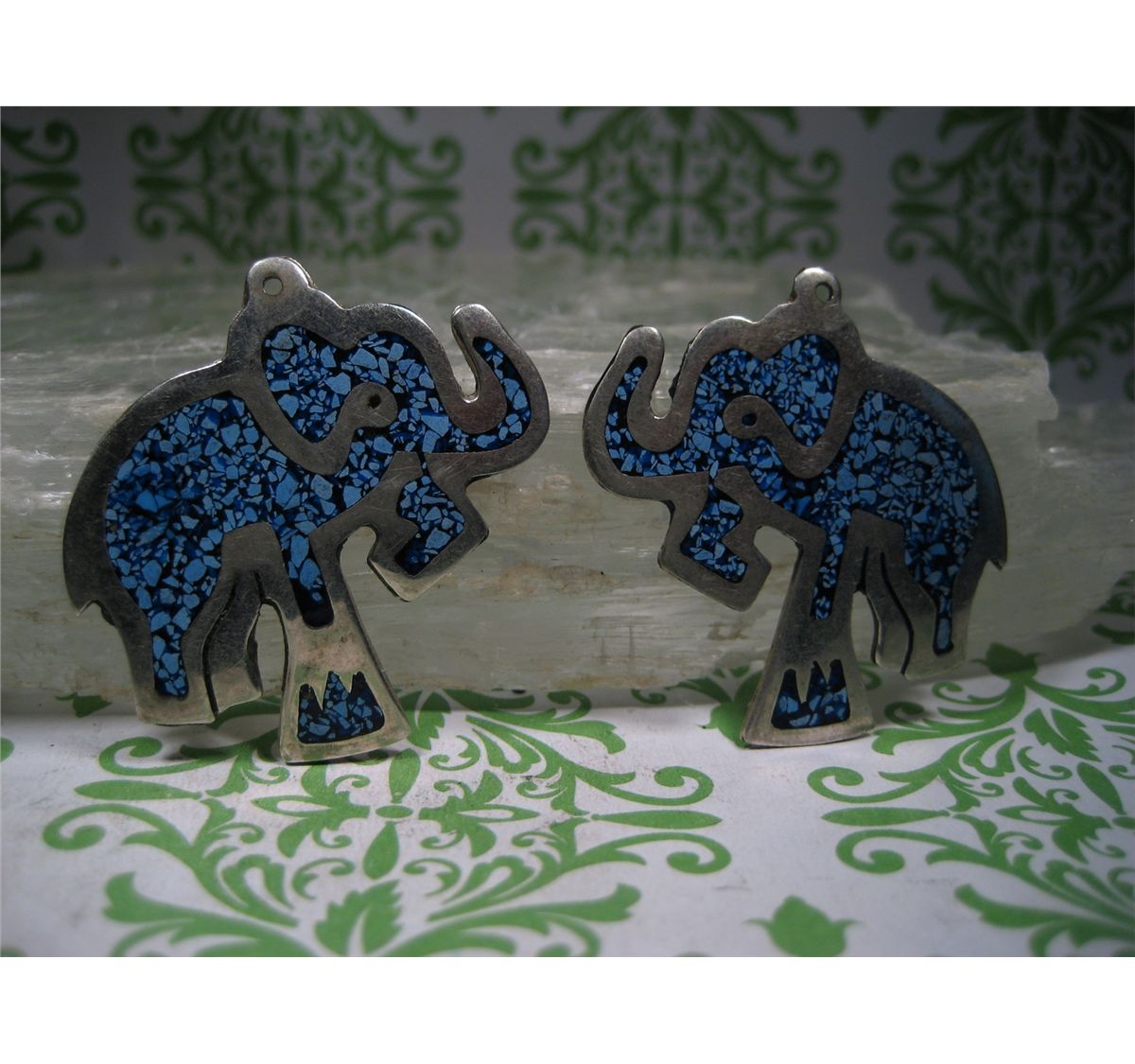 (1) PAIR OF STERLING SILVER ELEPHANTS EARRINGS PENDANTS CRUSHED TURQUOISE