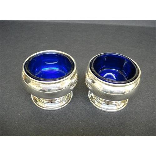 </font></strong>SUPERB PAIR OF OPEN SALT AND PEPPER CELLARS, MADE IN ART DECO STYLE, EACH STANDING ON A PEDESTAL, as per images, MADE FROM STERLING SILVER AND LINED WITH ORIGINAL COBALT BLUE GLASS LINERS, SIGNED ON THE BOTTOM "STERLING" - THEY ARE ELEGANT AND MADE OF SUPERB QUALITY, Excellent mint condition,Each measuring about 2" high and 2 1/4" in diam., US Buyer to pay 8.00 for shipping plus insurance.THANKS.</font>