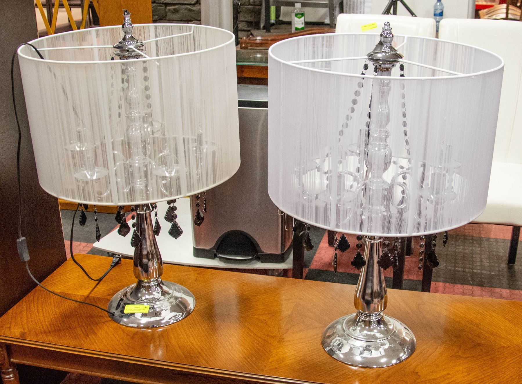 PAIR OF TABLE LAMPS - ONE OFF WHITE, ONE WHITE