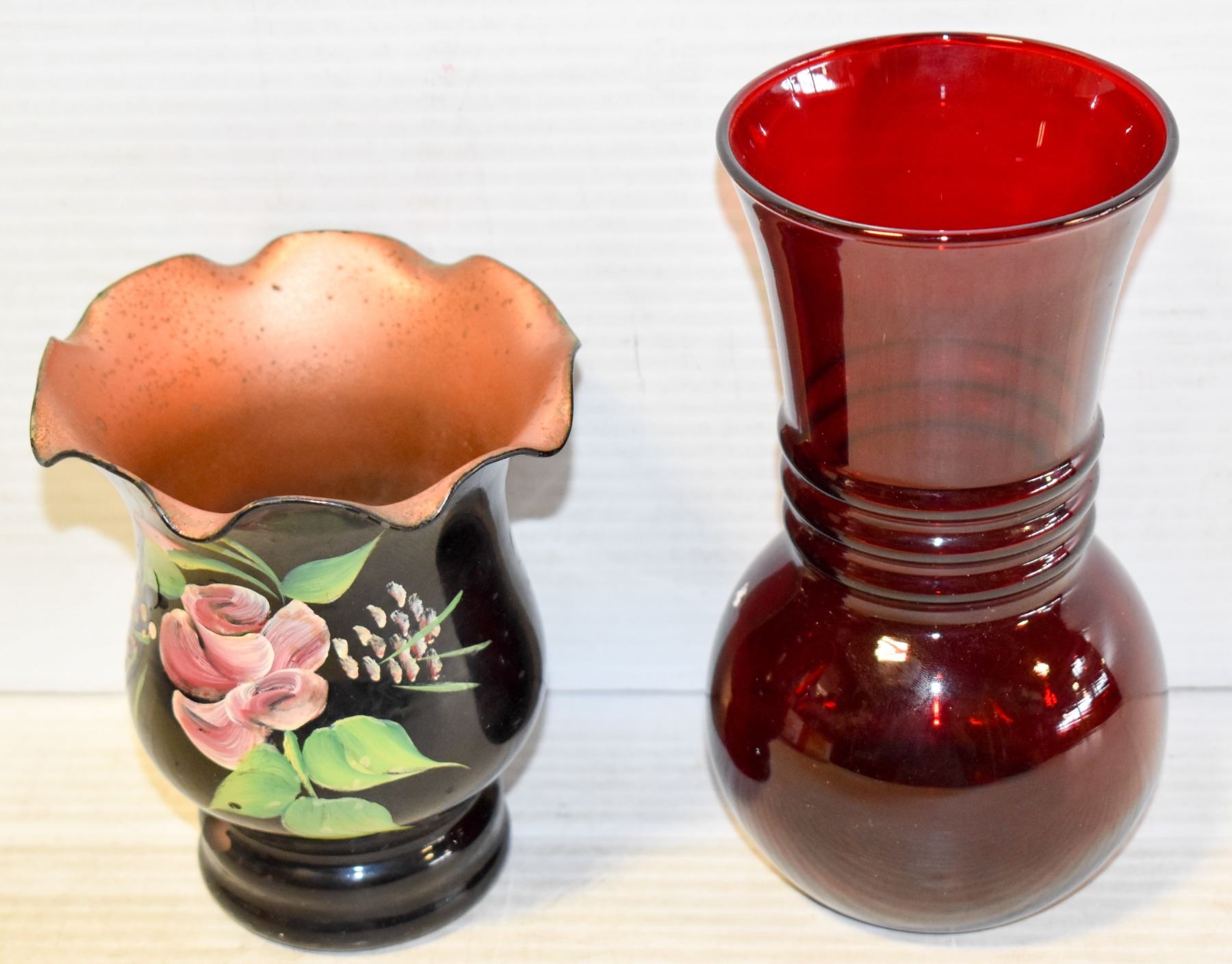 PAIR OF VASES - 1 HAND PAINTED