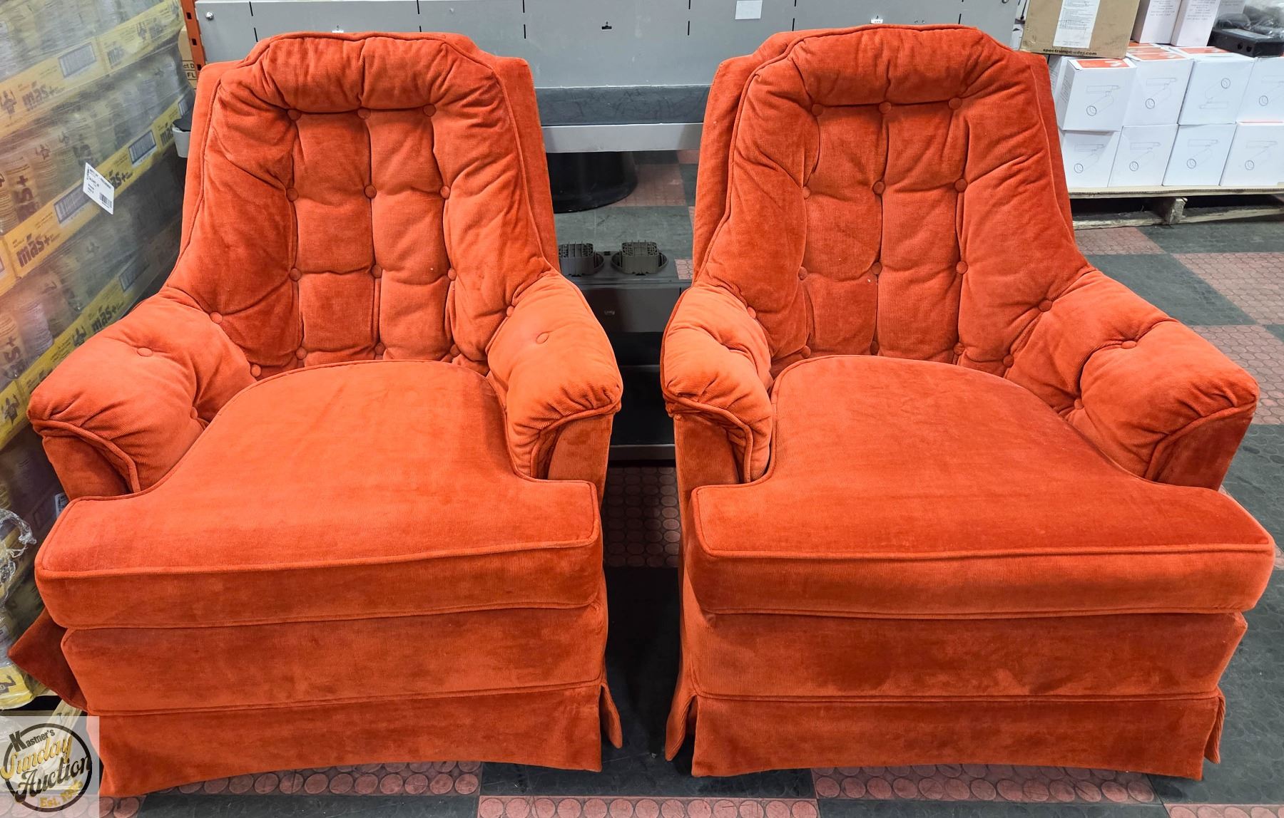 PAIR OF VELVET VINTAGE ARM CHAIRS