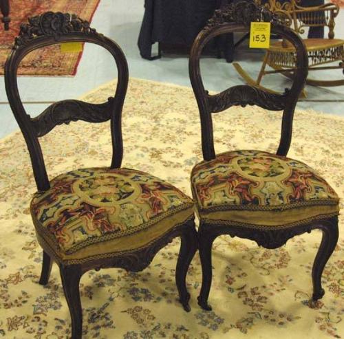 PAIR OF VICTORIAN ROSEWOOD CARVED SIDE CHAIRS with tapestry seats