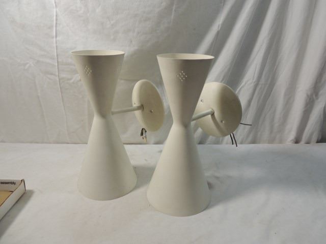 TWO NICE VINTAGE RETRO WALL MOUNT LIGHT FIXTURES, AS SHOWN. BOTH FOR ONE MONEY.