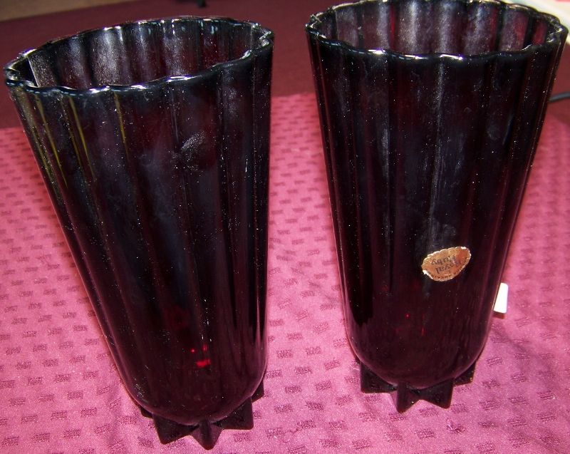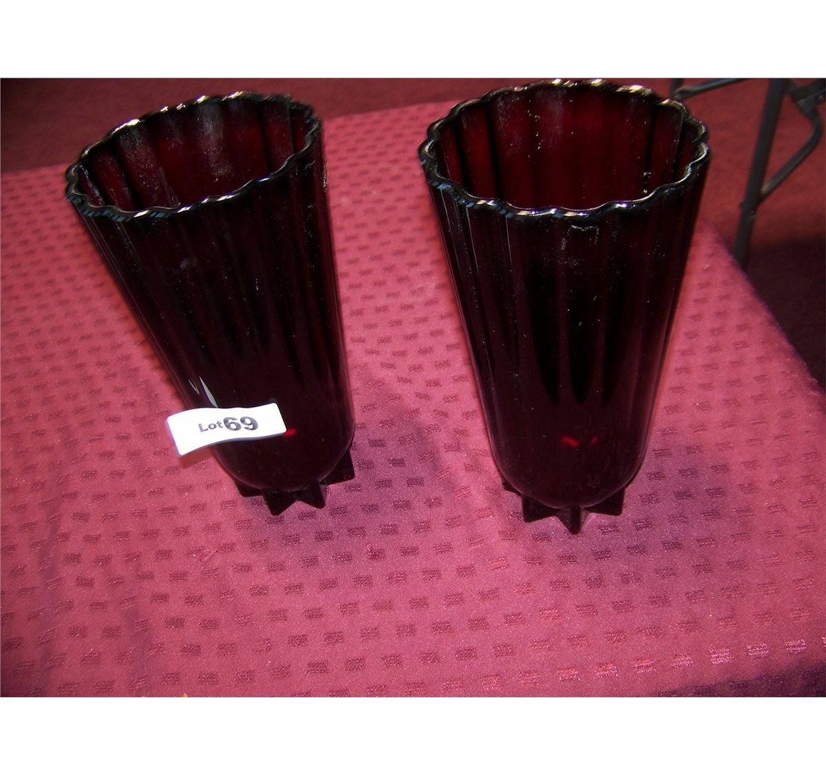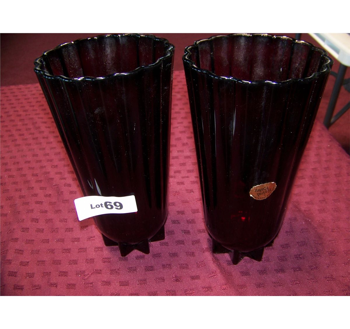 PAIR OF VINTAGE ANCHOR HOCKING ROYAL RUBY VASES