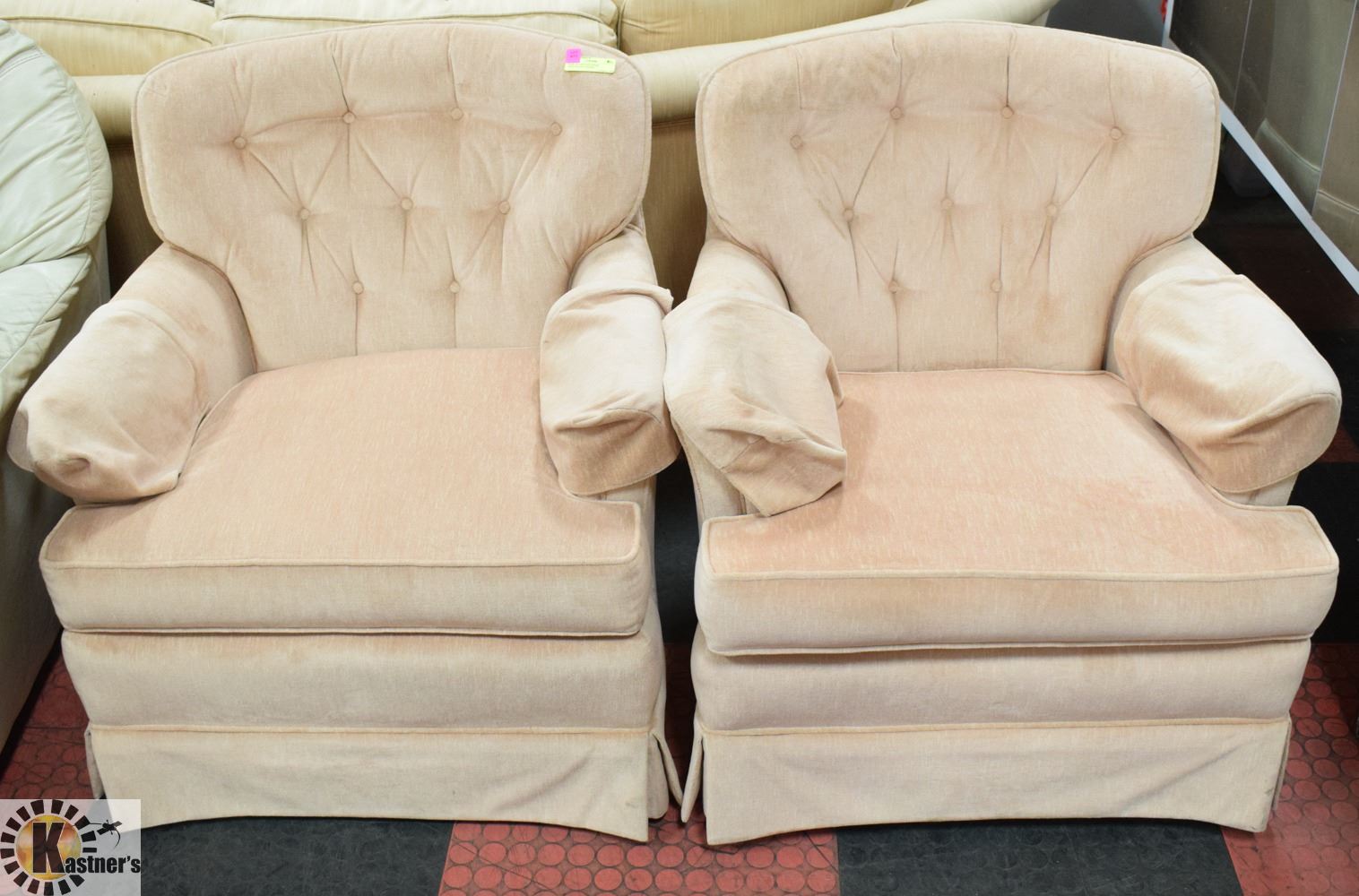 PAIR OF VINTAGE BEIGE SWIVVELING CHAIRS