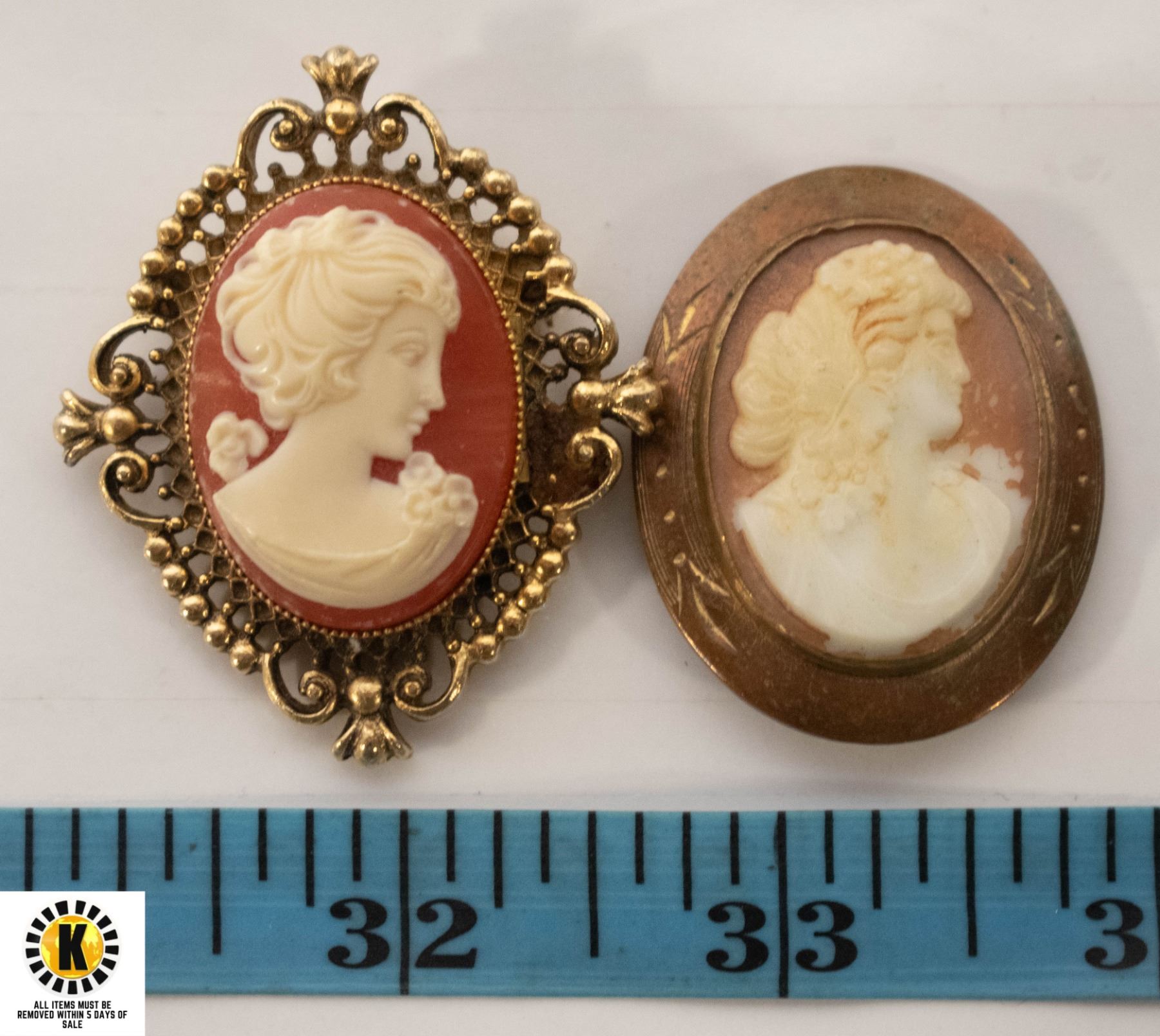 PAIR OF VINTAGE CARVED CAMEO BROOCHES