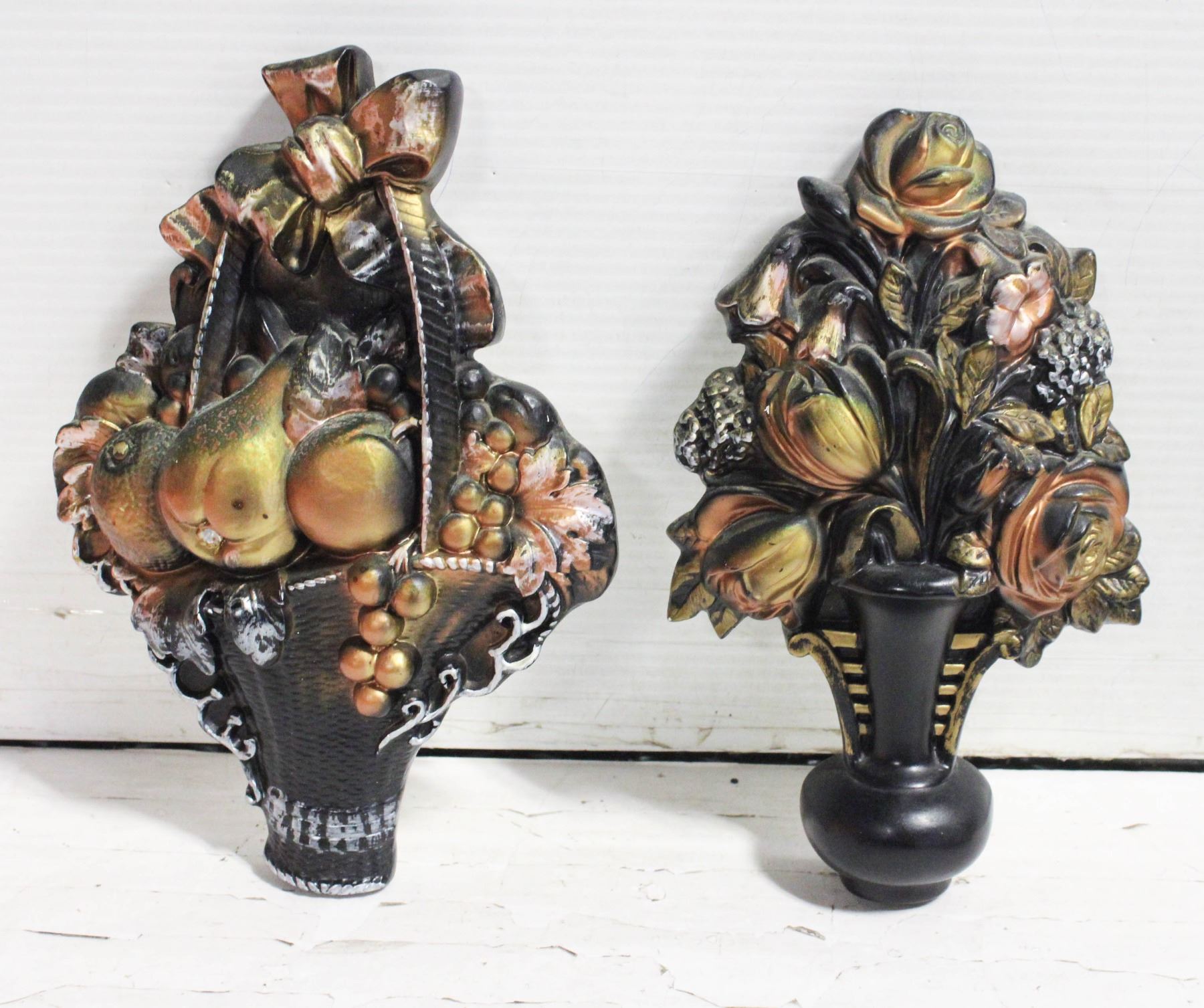 PAIR OF VINTAGE CHALKWARE BASKET WALL DECOR ITEMS