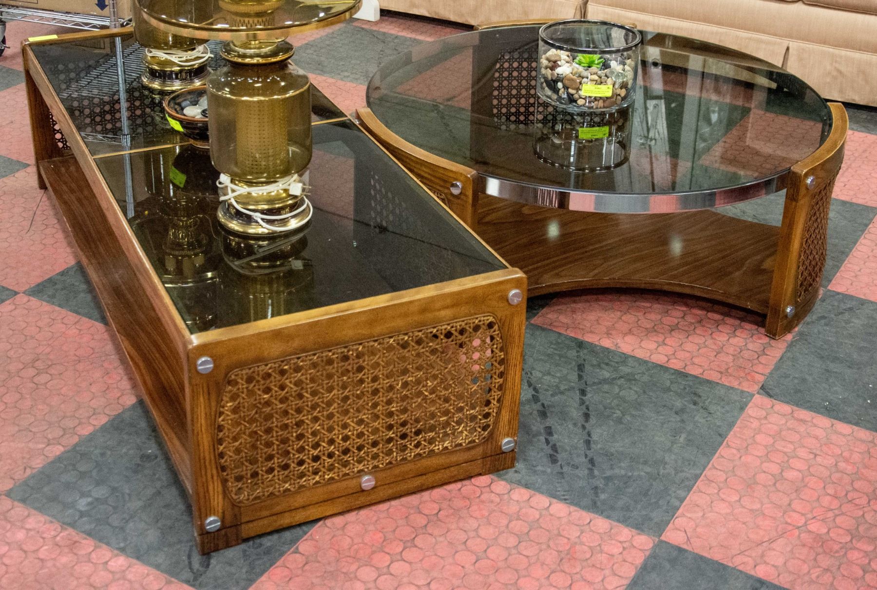 PAIR OF VINTAGE COFFEE TABLES W/ GLASS TOP INSERTS